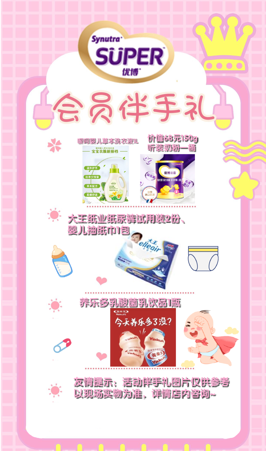 9月2日-9月20日期间,会员持会员卡购圣元优博婴儿奶粉,积满300积分即可参与抽奖(每人限一次),微信进入圣元积分小程序,注册-扫描罐底二维码积分-参与抽奖,中奖率100%