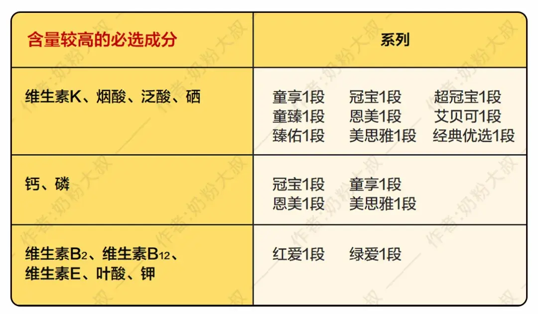 具体各款奶粉的营养成分差异,前面文章都有详细对比,如果是0-6个月纯奶粉喂养的宝宝,可以选择营养更全面的,如果是混合母乳喂养、或在6个月以上已经开始添加辅食,很多可选择成分完全可通过妈妈的饮食和宝宝日常辅食进行补充,不必纠结选择“最多营养”的配方。