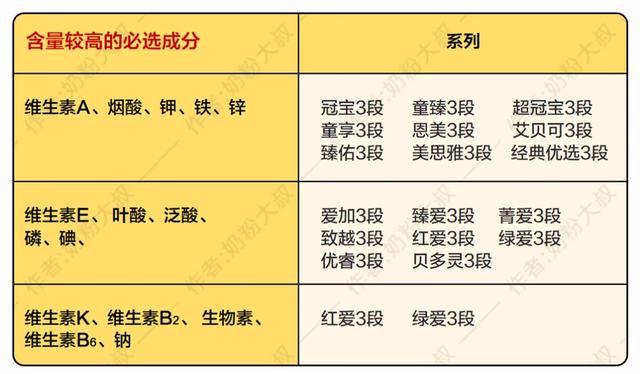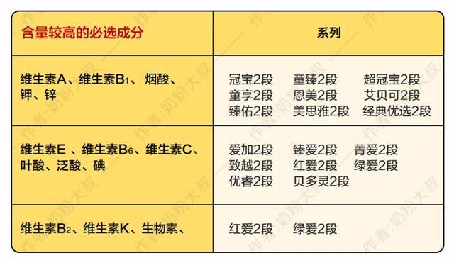 在国标GB10767-2010规定的必选成分里,全系列的2段奶粉都符合要求,大部分营养成分的含量都差不多,个别营养含量有所差异,具体如下:
