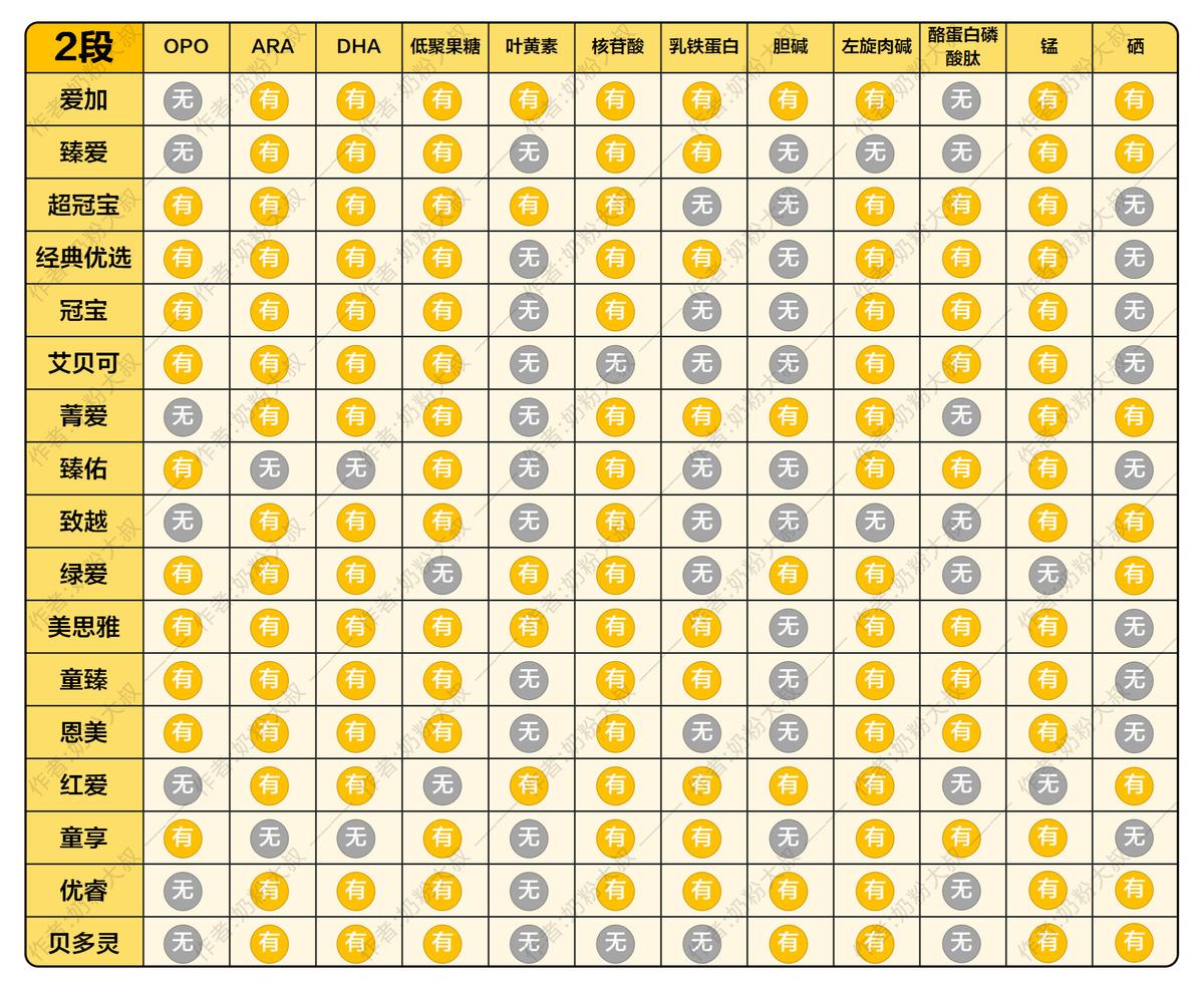 如果纯奶粉喂养的宝宝,可以选择含有这三种营养的配方,这次横评的17个系列奶粉中,2段配方中都添加了胆碱、锰、硒的营养只有4款,分别是爱加2段、菁爱2段、优睿2段、贝多灵2段。