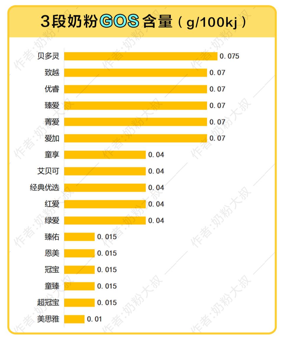 3段配方中,除了艾贝可3段(原名天才宝贝)贝多灵3段没有添加核苷酸之外,其他全部系列都添加了,但含量各有不同,具体如下: